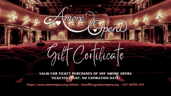 Amore Opera’s gift certificate is valid for ticket purchases of any Amore Opera ticketed event. No expiration date!
